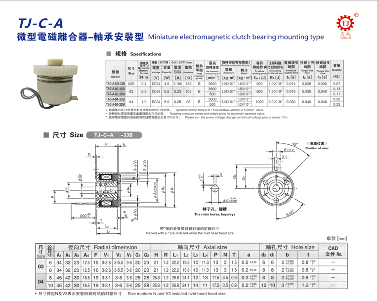 天機傳動生產廠家微型電磁離合器可稱之為微型勵磁離合器(DC24V)干式單板系列,與干式單片電磁離合器同原理(類型),是最適用于辦公設備、通信設備及電子設備、小型精密機械等領域。其轉矩小,響應性能好,有各種定制型號,緊湊式構造,扭矩穩定,在安裝及操作方面都極主簡單。