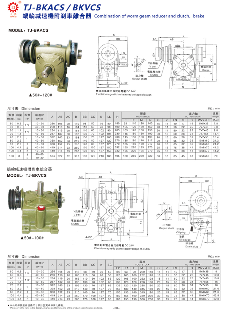 電磁剎車離合減速機-TJ-BKACS型優點介紹: