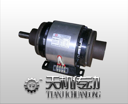 通軸式雙電磁離合器組合TJ-POF2型工作基本原理:軸兩端的電磁離合器轉子及電磁剎車器被固定在出力軸上,而雙側的電磁離合器軸承凸輪被解鑲在出力軸上。當右側的電磁離合器接通電流時,軸承凸輪帶動出力軸,當切斷電流時,軸承凸輪與出力軸處于分離狀態。當右側電磁離合器通電時出力軸就被帶動,左側斷電時電磁離合器就會分離,出力軸隨即停止動作。