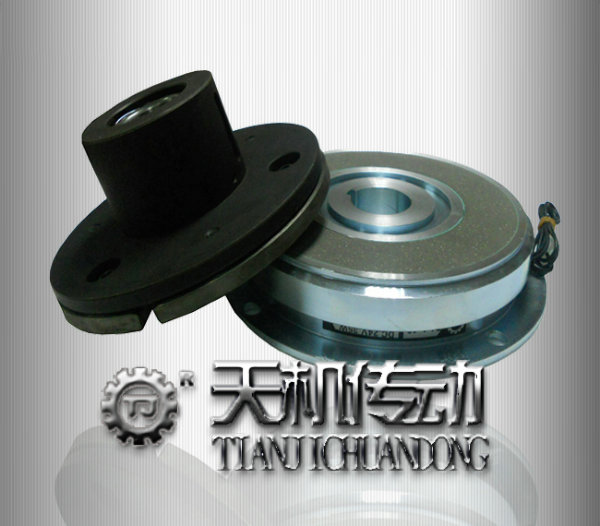 天機傳動內軸承式電磁離合器由銜鐵(電樞板)、定子、轉子、板型彈簧片、磁性線圈、來令片、軸承、鐵導座等元件構成,統一使用DC24V,標準規格0.6-40KG。